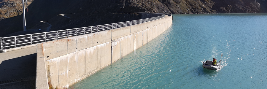 These systems are mounted under the boat's hull. A multibeam echosounder is an ideal system for monitoring and inspecting the lake or seabed. It offers excellent resolution (10 points/m2) and accuracy (3-5cm). It can operate at depths of 1 meter or more.