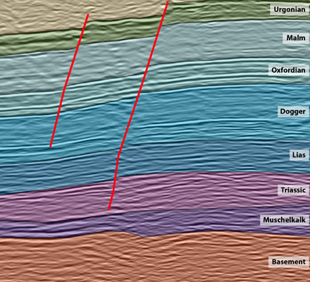 Seismic reflection is based on the measurement and processing of waves reflected at geological interfaces. These reflections depend on velocity and density contrasts. Sections highlight stratigraphic boundaries, dips, faults, folds or reservoirs.
